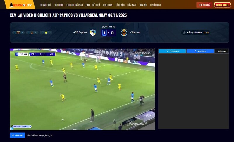 Ngay khi bạn xem kết quả, Rakhoi TV cho phép truy cập highlight nhanh chóng: