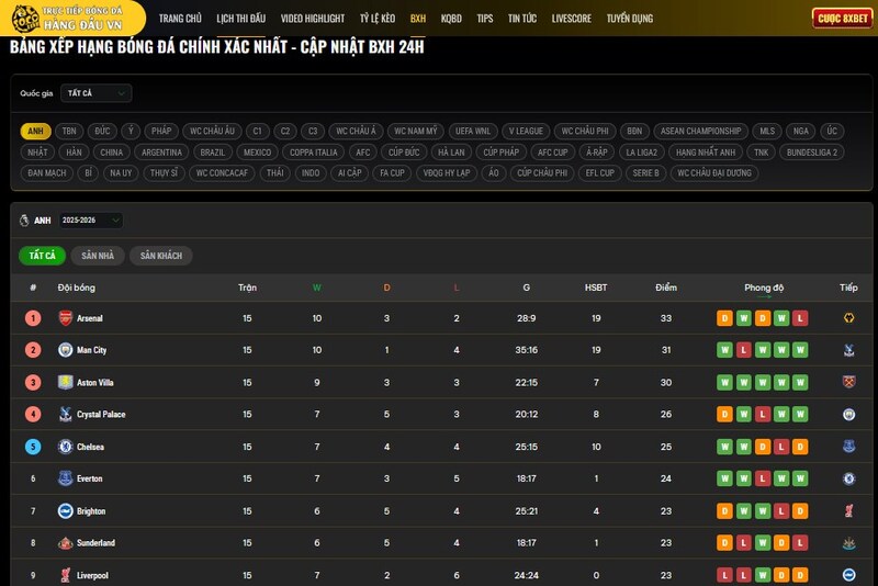 Tôi thường xuyên kiểm tra bảng xếp hạng bóng đá ngoại hạng anh, và phải nói rằng Socolive2 cập nhật rất nhanh sau mỗi lượt trận.