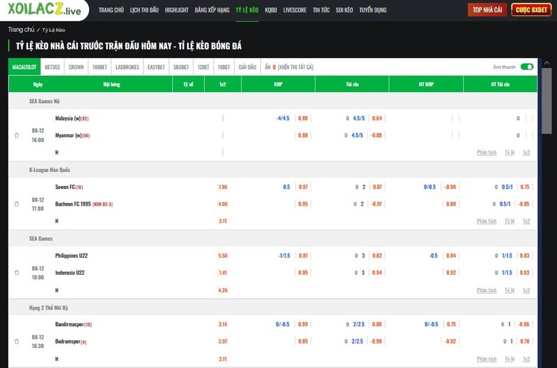 Bên cạnh việc xem bong da truc tiep, tôi còn thường xuyên theo dõi tỷ lệ kèo malaysia vì loại kèo này rất phổ biến ở Việt Nam và có cách tính dễ hiểu. Điều tôi thích ở Xoi Lac TV là bảng kèo được cập nhật liên tục và rất đầy đủ.